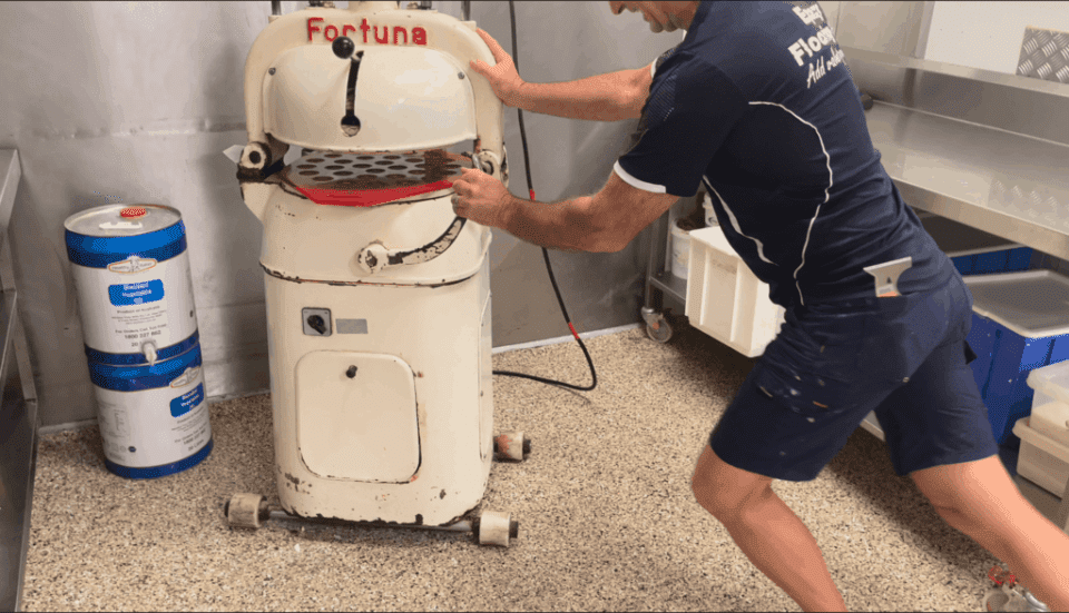 Check out this 2 min video to see what happened when a commercial bakery dragged all their equipment back into place just 8 hours after we completed their epoxy floor installation.